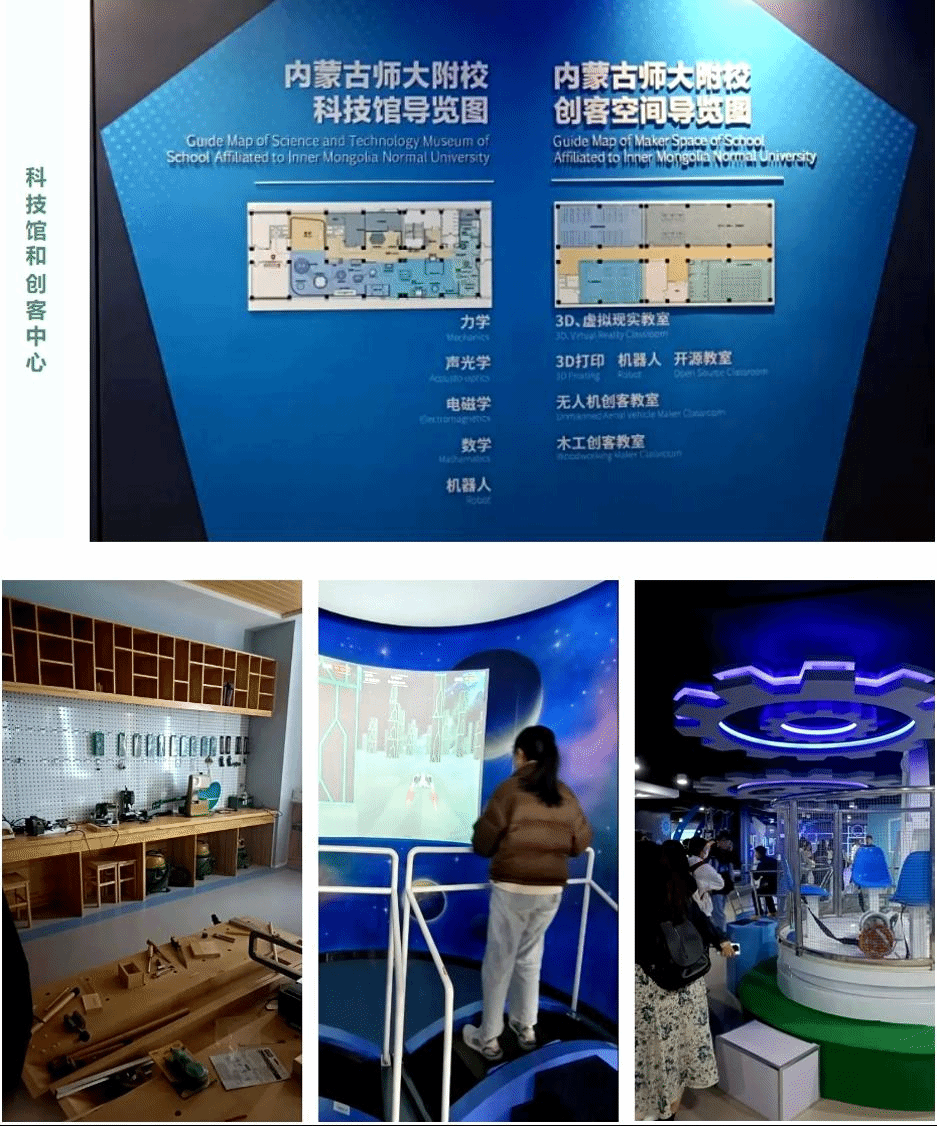 校园科技馆和创客中心的建设具有重要的意义和价值。内蒙古师大附校科技馆内设置了声、光、电、力、磁等多学科科普展品及体验设备,这些仪器集科学性、知识性、趣味性、操作性于一体,将光的反射、声的传播、力的分解、电的产生、水的循环、能的转化、磁场变化等自然常识和科学原理以直观的形式演示出来。学生亲自操作,动脑动手,发现其中的奥妙,掌握其中的科学原理。同学们在体验科学的魅力的同时切身感受到了浓厚的学习氛围。