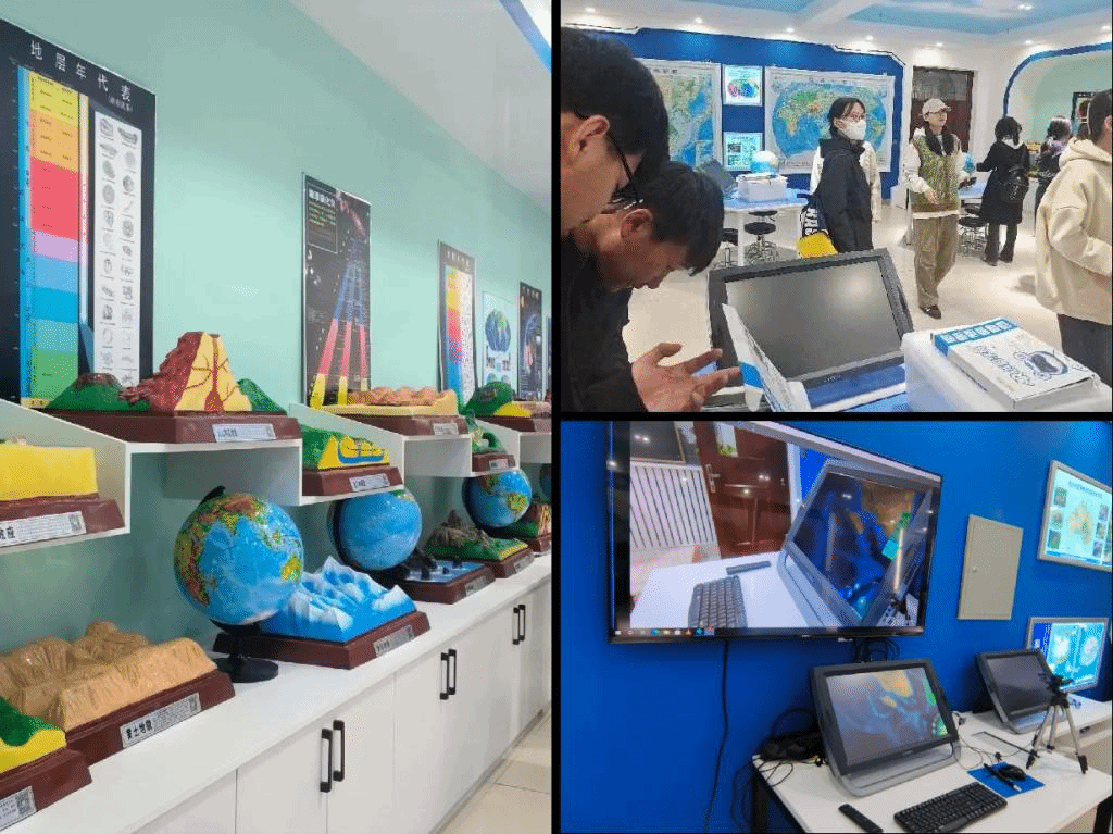 随后,同学们参观了地理教室、科技馆和创客中心。suncitygroup太阳集团官方网站附属中学的地理教室,遵循教育部《中学地理专用教室建设规范》,以数字化教育教学装备为依托,教室置备了数字地球仪、AR地理沙盘、语音立体地形图等数字化设备和各类教具模型,把数字化与虚拟现实技术融入了传统教学。见习生真正领悟了“数学化地理教室赋能地理教学”的重要性,见习生观察到有序的教育和学习环境,从而增强了职业认同感。