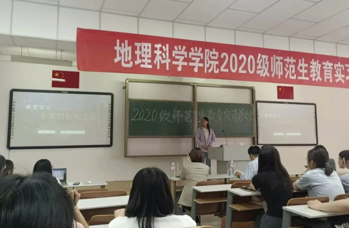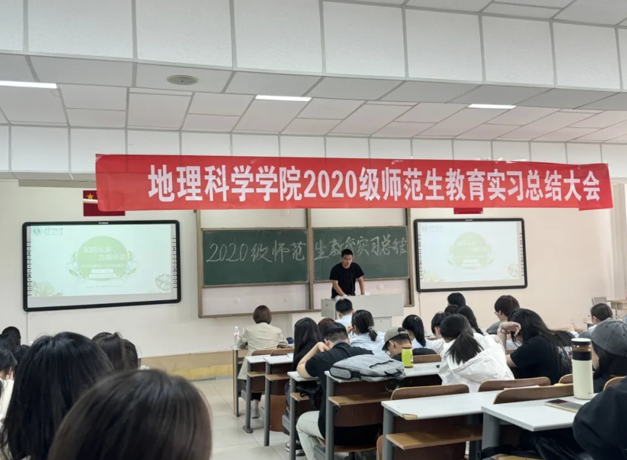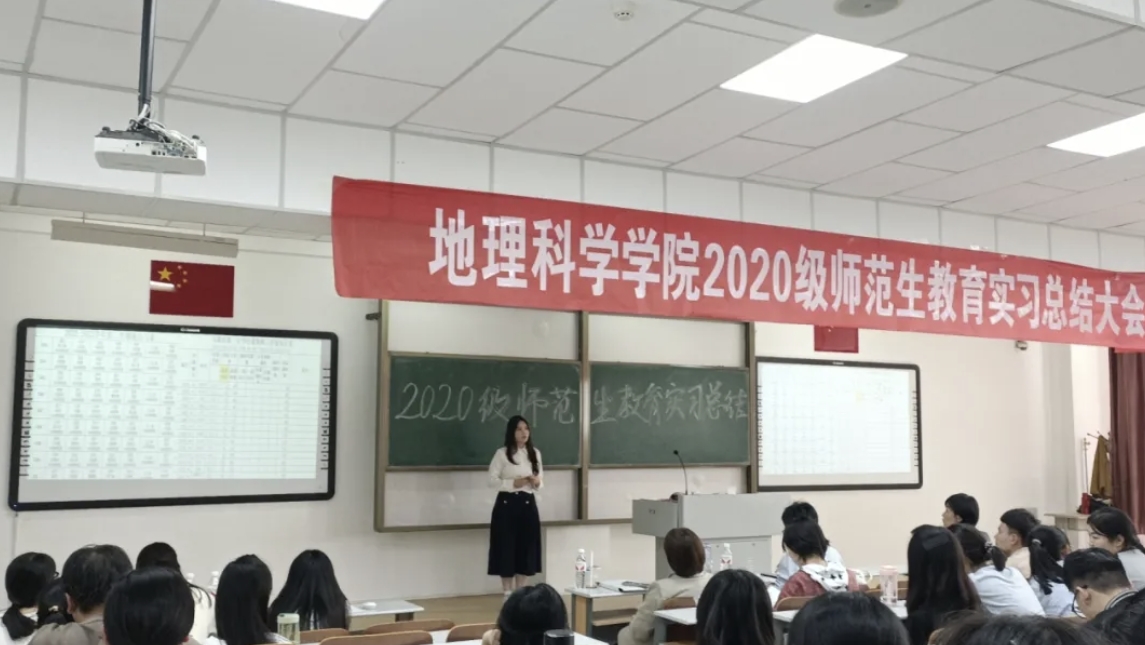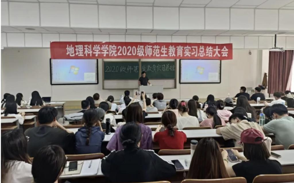 5月16日下午15:00,suncitygroup太阳集团官方网站举办了2020级师范生教育实习总结大会。出席本次活动的有2021级地理科学汉班全体学生、地理科学系主任阿荣老师、副主任郭恩亮老师。由赵伟老师担任本次活动的主持人,师生共计158人。此外,活动邀请到2020级七位优秀且经验丰富的学姐学长,分享他们在教育实习中的见闻、感悟。