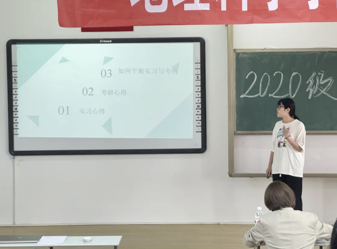 王奕博同学主要分享了身为教师的责任,应对压力的方法。特别讲到在教育实习中要坚持不懈,持之以恒。分享了克服困难和挫折的经历,提醒我们要保持初心,不断追求进步,坚持对教育事业的热爱和信念。