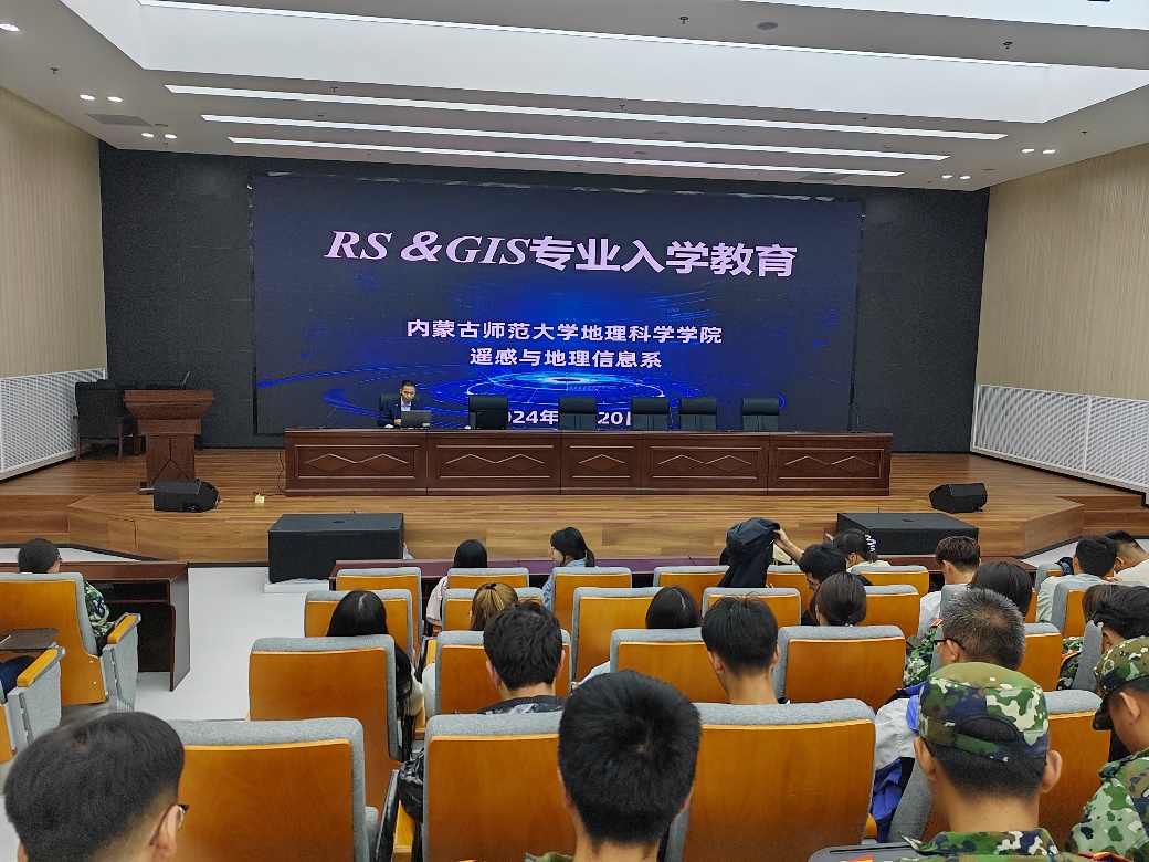 活动由系主任黄晓君副教授主持,他首先向新生们介绍了遥感与地理信息系的整体情况,涵盖了系内师资力量、学科建设、科研平台及近几年的发展成就。黄晓君主任特别强调,太阳的遥感与科学技术专业是内蒙古自治区第一个,也是新兴专业。该专业近年来紧跟国家需求,致力于培养具有扎实理论基础与创新能力的复合型人才,在学术研究和行业应用中都展现出广阔的前景。他还鼓励新生们抓住机遇,积极打好基础、参与科研项目和学术竞赛,不断提升自身的实践能力和专业素养。
