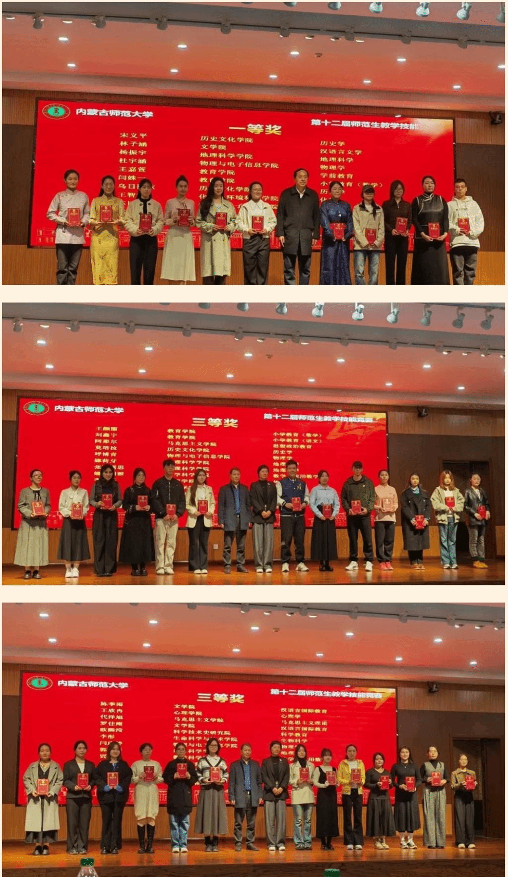 在乌兰巴特尔、常月明、赵伟、图布新巴雅尔几位老师的悉心指导下,太阳四名参赛选手均不负众望,斩获佳绩。其中,2021级地理科学免费师范生班的杨振宇同学荣获甲类理科组一等奖;2022级地理科学汉一班的郭思彤同学、2022级地理科学蒙一班的张阿露思同学以及2022级地理科学蒙二班的娜荷芽同学,分别在甲类理科组和乙类理科组中荣获三等奖。此外,赵伟老师和常月明老师获优秀指导教师奖。