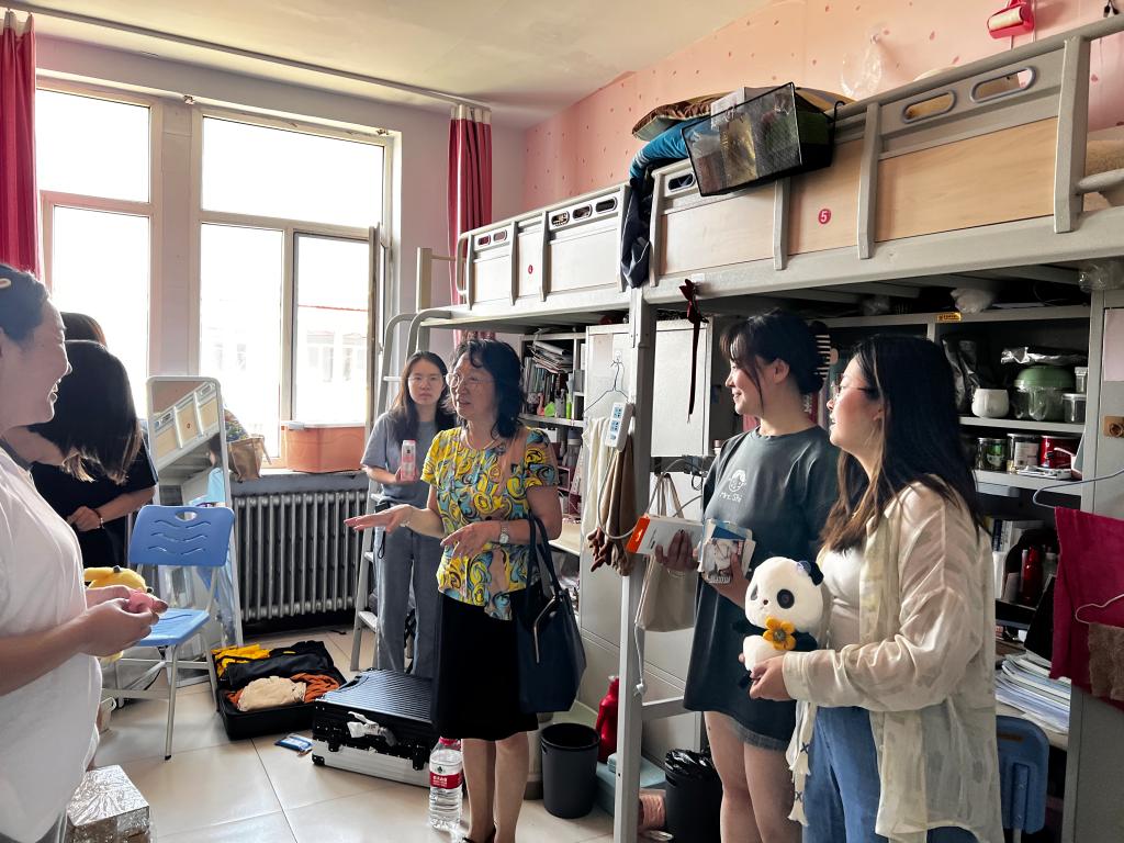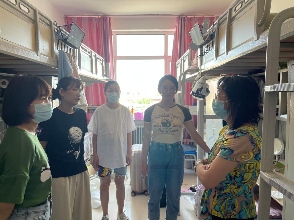 2022年6月19日-20日,太阳第一批毕业年级学生按照错时错峰、自愿返校原则,共计34名毕业生迎来2022学年第二学期返校第一天。学院党委书记张裕凤教授、辅导员孙小雅、奕莉琦、王若冰等代表学院教工第二党支部前往盛乐校区,欢迎同学们安全顺利返校,并与同学们亲切交流,寻问假期生活与路途情况,提醒学生们要注意个人防护和公共卫生,关切地询问了毕业生论文完成情况和就业考研情况,对2022届毕业生的未来发展方向表达了美好的祝福。