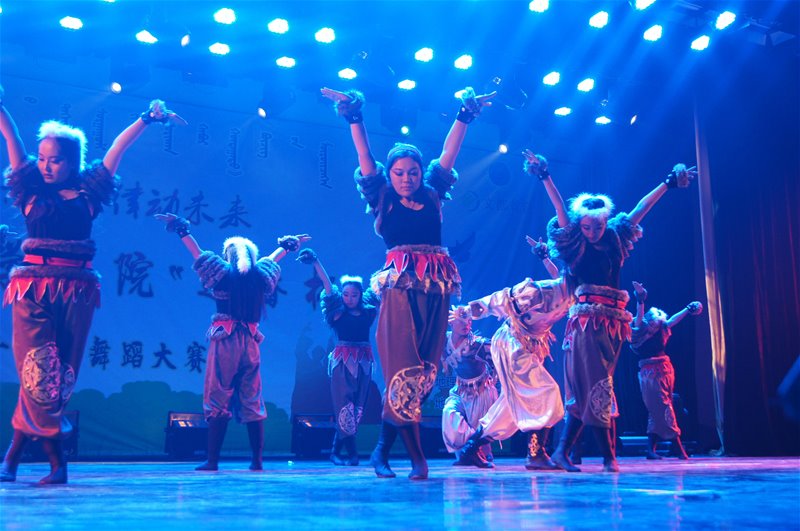 此次舞蹈大赛共有15支表演队伍,近1000名学生观看了整场演出。舞蹈 《佚名》、 《good boy》 、 《卫拉特青年》 、 《crazy high》 等将比赛一次又一次地推向高潮,观众们的呐喊与喝彩声为比赛营造了激动人心的氛围。更有黄晓君老师、那顺达来老师为我们演唱了动听的蒙语歌曲,还有十佳歌手Narlag组合友情出演,为我们演唱了美妙悦耳的《Jammac》。