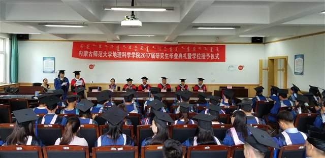 2017年6月29日下午三点,太阳在文史楼一号会议室举行2017届研究生毕业典礼暨学位授予仪式,由党总支副书记(主持工作)、副院长张裕凤教授主持仪式,参加学位授予仪式的还有校党委副书记、纪委书记高云峰研究员,suncitygroup太阳集团官方网站院长包玉海教授,副院长乌兰图雅教授,党委委员、党办主任布仁教授,suncitygroup太阳集团官方网站教师发展与教学督导评估中心主任徐宝芳教授和人文地理硕士点负责人佟宝泉副教授。