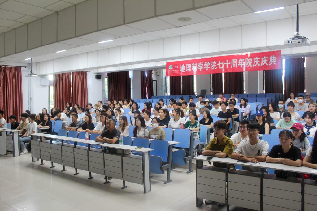 退休教师代表苏根成教授回忆了自己在地科院的教书育人时光,激动地表示1952年成立的史地科经过多年的努力奋斗和不懈精进,终于在完成了一代代地理人的梦想,成功获得了地理学一级学科博士学位授权点,这是可歌可泣的、值得敬佩的成绩!在七十周年之际,每个地理人都应该感到光荣和骄傲!