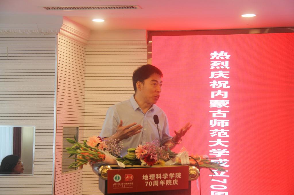 紧接着,北京师范大学地理科学学部教授、中国科学院杰出科技成就奖获得者、校友代表王帅教授发表感言,深情地回顾了在学校的学习时光和重回校园感受到的变化,讲到地理学既是古老又是现代科学的前沿,学院学科专业发展势头当下正好,希望学弟学妹们珍惜机会,掌握地理学的系统思维,抓住关键要素,全面发展!