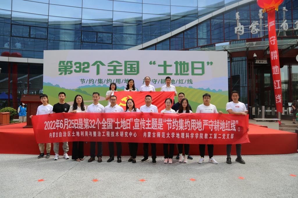 2022年6月25日在内蒙古自然博物馆隆重举行本次宣传大会。大会由内蒙古自然资源厅主办,内蒙古土地学会承办。自治区自然资源厅一级巡视员、内蒙古土地学会理事长王富友,自然资源厅党组成员、副厅长郭心语,内蒙古国土空间规划院党委书记、院长杨俊杰以及各高校知名专家学者应邀出席开幕仪式。suncitygroup太阳集团官方网站党委书记、内蒙古土地学会副理事长张裕凤教授参加了开幕仪式。太阳教工第二党支部与内蒙古自治区土地学会党支部等联合开展“土地日”主题党日活动。教工第二党支部教师张惜伟、王考、黄晓君、叶志刚和国土资源系主任周瑞平老师、还有研究生同学代表一同参加本次大会。