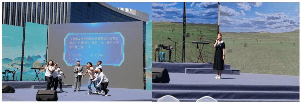 在“大地歌会”表演区,太阳研究生祁林玉演唱了“敕勒歌”,深情表达对祖国大地的热爱;在互动区,设置与土地相关的知识竞赛题目,姜洪涛老师带领2名同学面对擂主从容答题,取得好成绩。