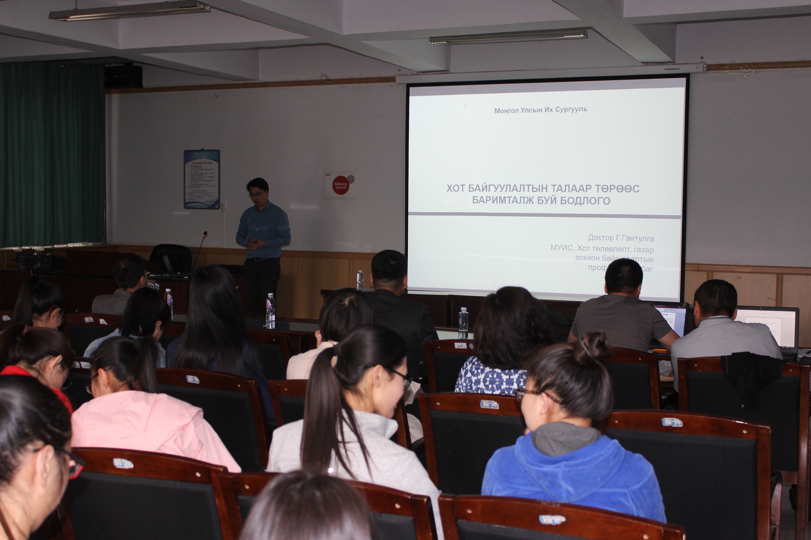 应suncitygroup太阳集团官方网站的邀请,2016年5月12至16日,蒙古国国立大学米嘎玛尔斯仁、钢图拉嘎、钢普茹布副教授来太阳进行学术交流。suncitygroup太阳集团官方网站的本科生、硕士生及部分老师聆听了讲座。三位专家以最新的视角和高水平的研究方法讲述了蒙古国城市化现状、存在问题及其解决方法。通过此次学术交流,加深了太阳师生对蒙古国的了解,为两国今后深层次开展合作奠定了基础。