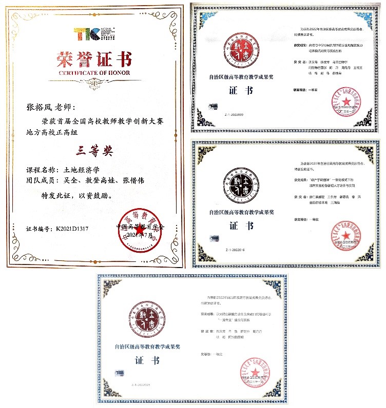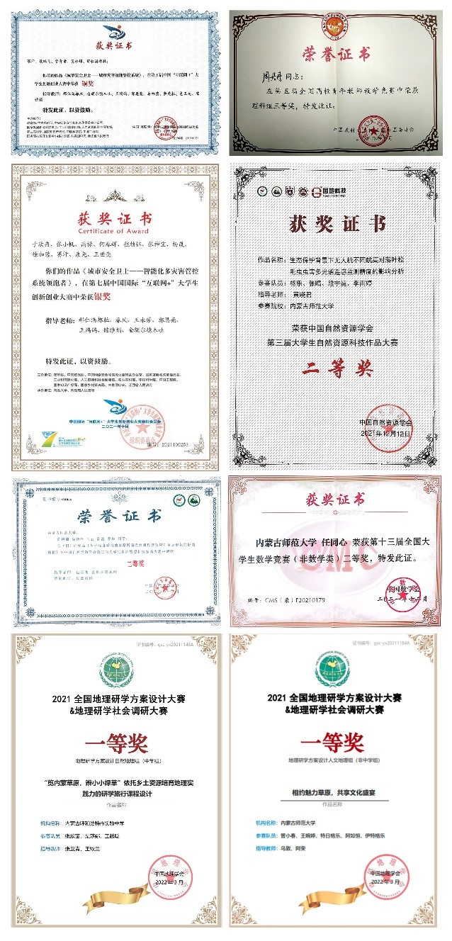 聚焦新形态教学模式,打造国家级一流课程1门、自治区级一流课程5门,分别荣获“全国高校教师教学创新大赛”和“全国高校青年教学竞赛”三等奖、自治区级高等教育教学成果一等奖3项。通过创新教学环境,发挥“科研反哺教学”机制,提升学生的专业技能和实践创新能力。近5年学生获全国高校地理师范生教学技能大赛一等奖、中国国际“互联网+”大学生创新创业大赛主赛道银奖等各类奖项共 100 余项,其中省部级以上65项。