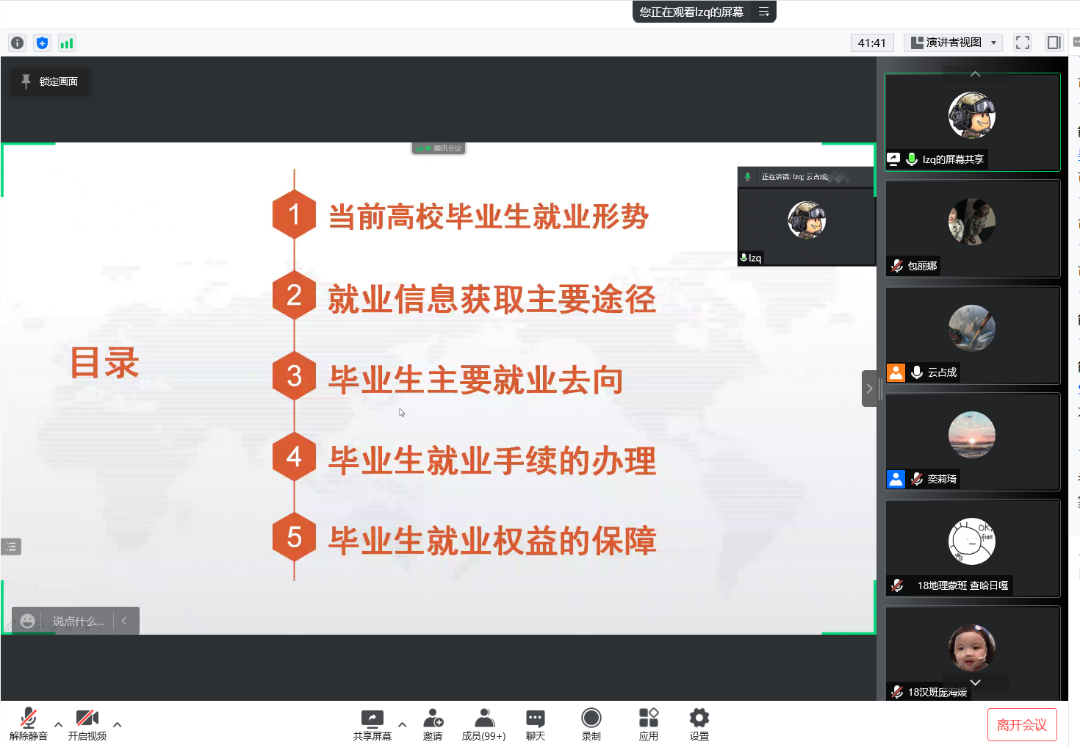 为提高太阳2022届毕业生就业意识,了解当前就业形势,促进毕业生高质量就业,suncitygroup太阳集团官方网站于2022年3月17日下午特邀太阳招生就业处就业市场部部长刘在青老师开展线上就业政策讲座,会议由太阳党委副书记、副院长云占成老师主持,学院系主任、2022届毕业班班主任、及全体毕业生参会。